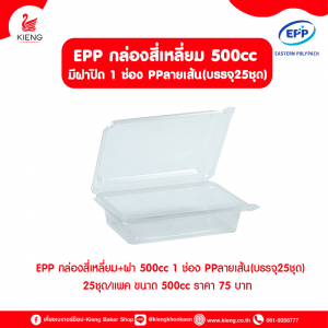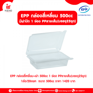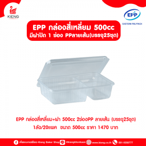 EPP กล่องสี่เหลี่ยม+ฝา 500cc 1 ช่อง PPลายเส้น(บรรจุ25ชุด) 1ลัง/20แพค