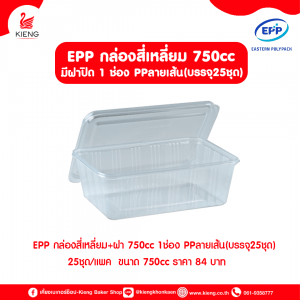 EPP กล่องสี่เหลี่ยม+ฝา 750cc 1ช่อง PPลายเส้น(บรรจุ25ชุด) 1ลัง/20แพค