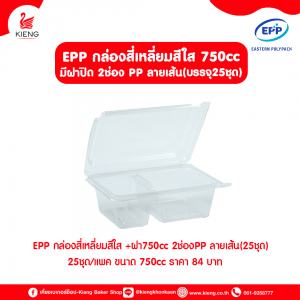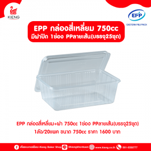 EPP กล่องสี่เหลี่ยมสีใส +ฝา750cc 2ช่องPP ลายเส้น(25ชุด)