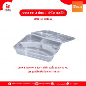 กล่อง PP 3 ช่อง + ฝาปิด แบบใส C850-3
